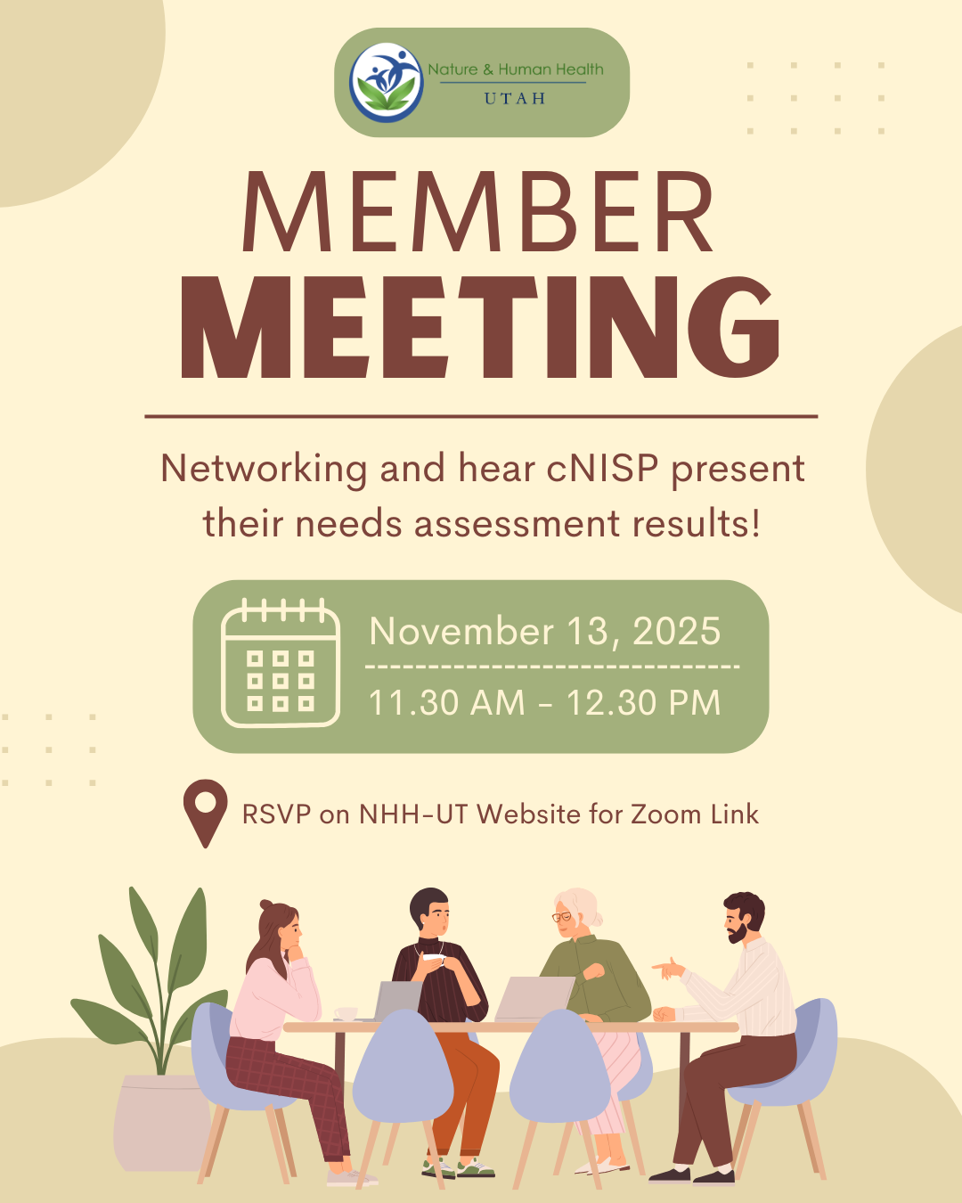 The November Nature and Human Health Meeting will be held via Zoom on Thursday, November 13th, from 11:30 AM to 12:30 PM. Join us for networking and a presentation from cNISP on their needs assessment findings. Click below to RSVP and receive the Zoom link by email.