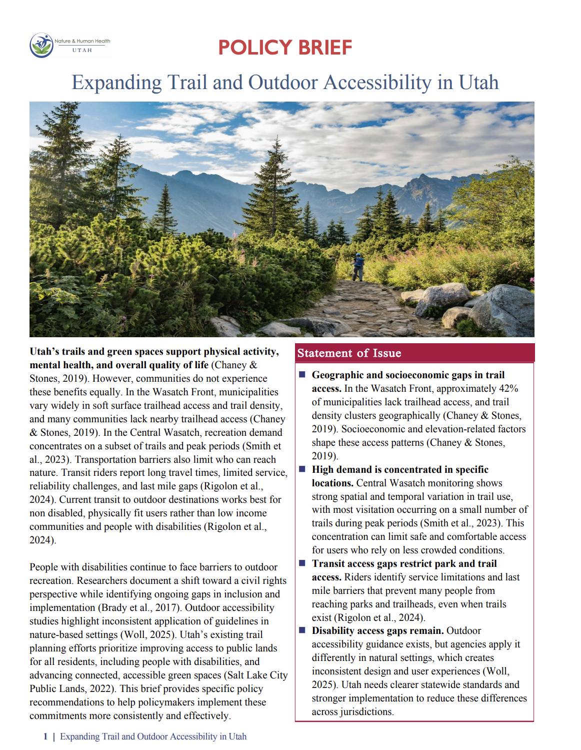 NHH-UT Policy Briefs share clear guidance on nature, equity, and public health issues.