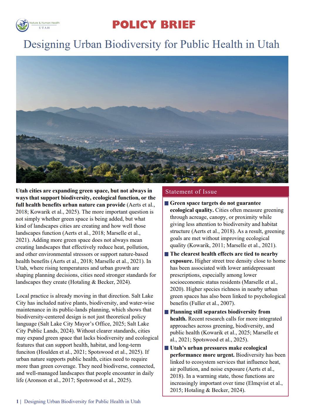 Prepared by Owen Watkins, Designing Urban Biodiversity for Public Health in Utah