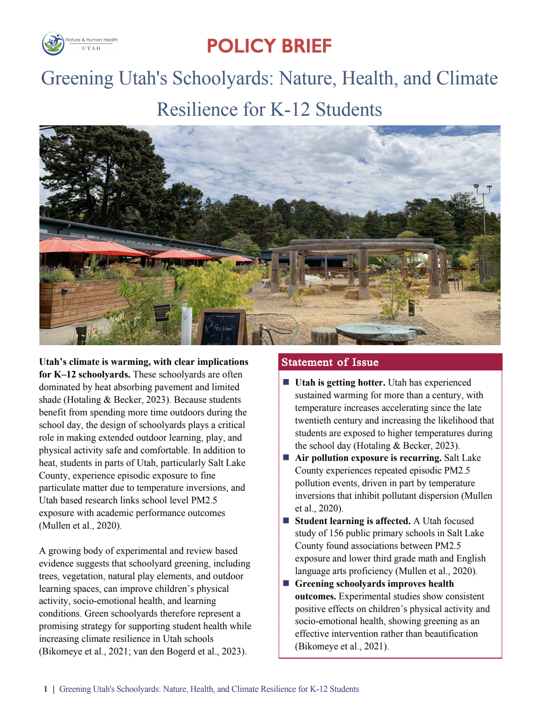 Prepared by Owen Watkins, Greening Utah's Schoolyards: Nature, Health, and Climate Resilience for K-12 Students