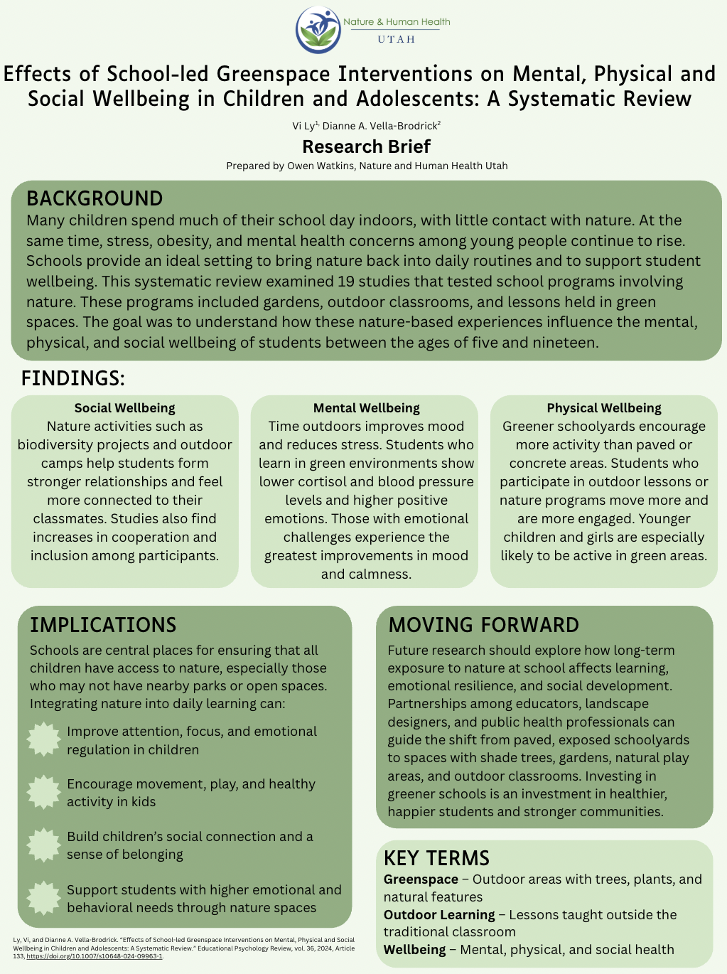 Prepared by Owen Watkins, Effects of School‑led Greenspace Interventions on Mental, Physical and Social Wellbeing in Children and Adolescents: A Systematic Review