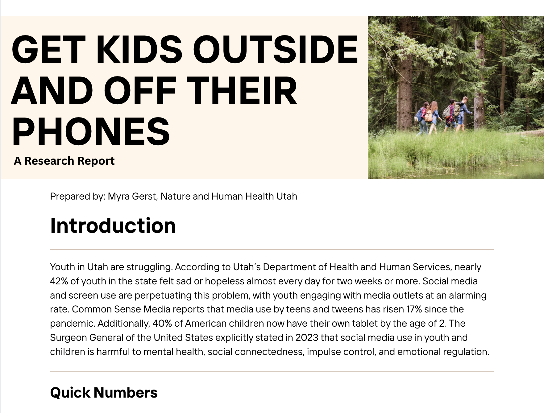 Prepared by Myra Gerst, Forest bathing increases adolescent connection to nature: A mixed-methods study